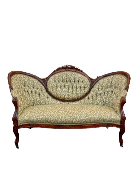 Dorothy is both elegant and uncomplicated, featuring hand-carved wood details and a delicate green floral design. It's the perfect addition to any lounge or as a statement piece at a sweetheart table.