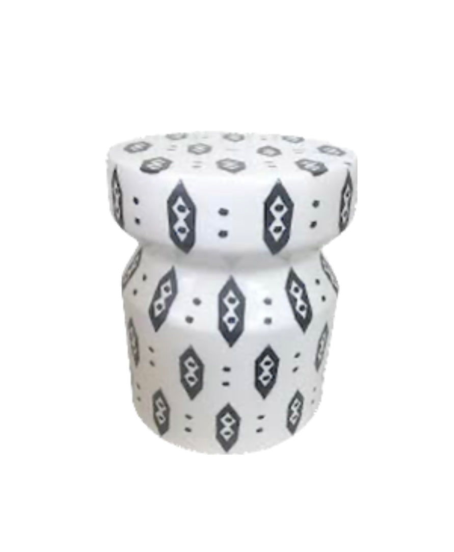 Our domino garden stool is the perfect black and white addition to any room. Substantial size to work for cocktails in a lounge or a floral arrangement.