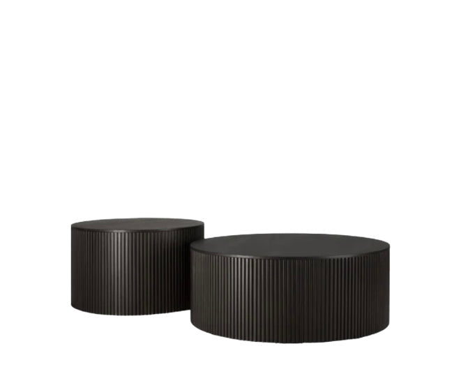 This fluted black coffee table set are the perfect modern addition to any lounge. They are rented as a set of two, varying size. Whether nested together or spread out, these tables are sure to elevate the space. For an epic lounge center, consider renting two sets.