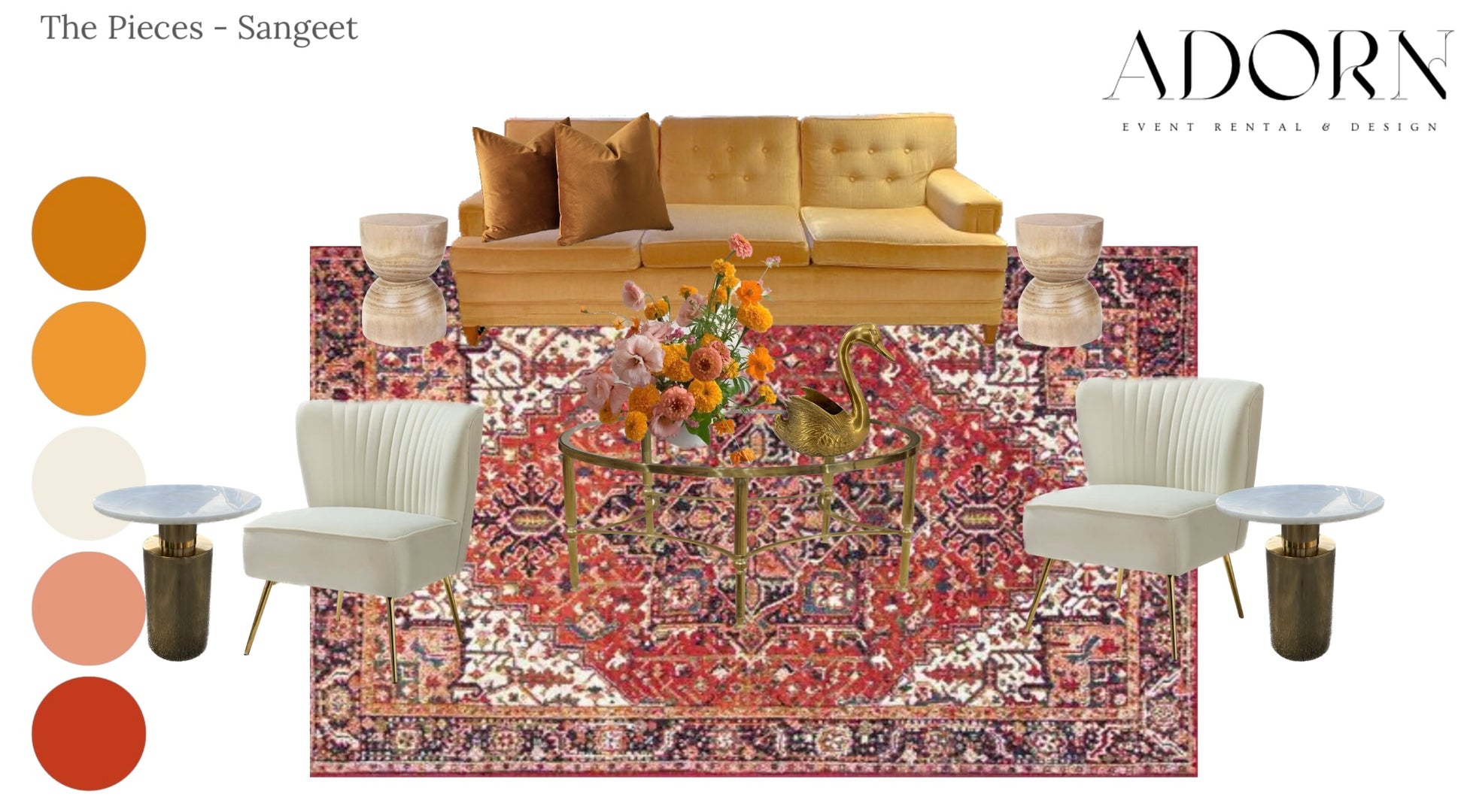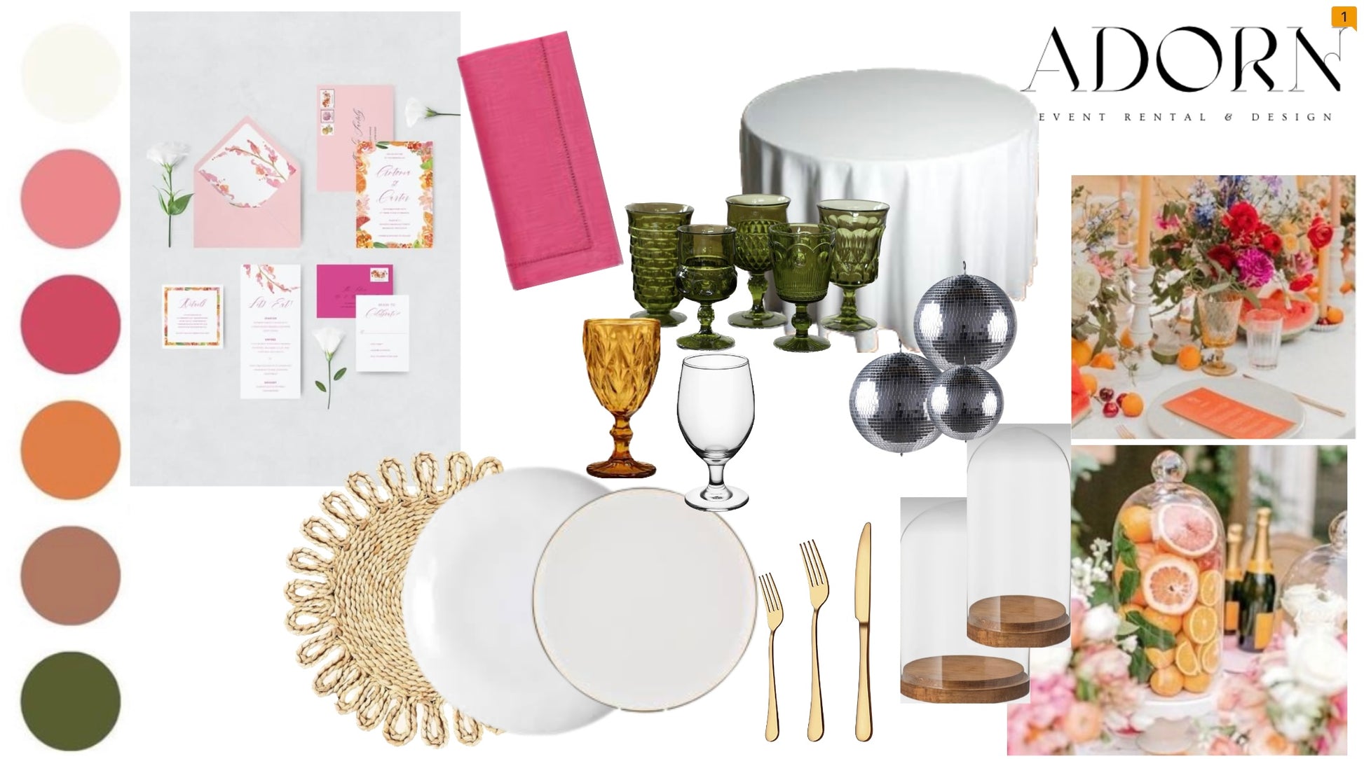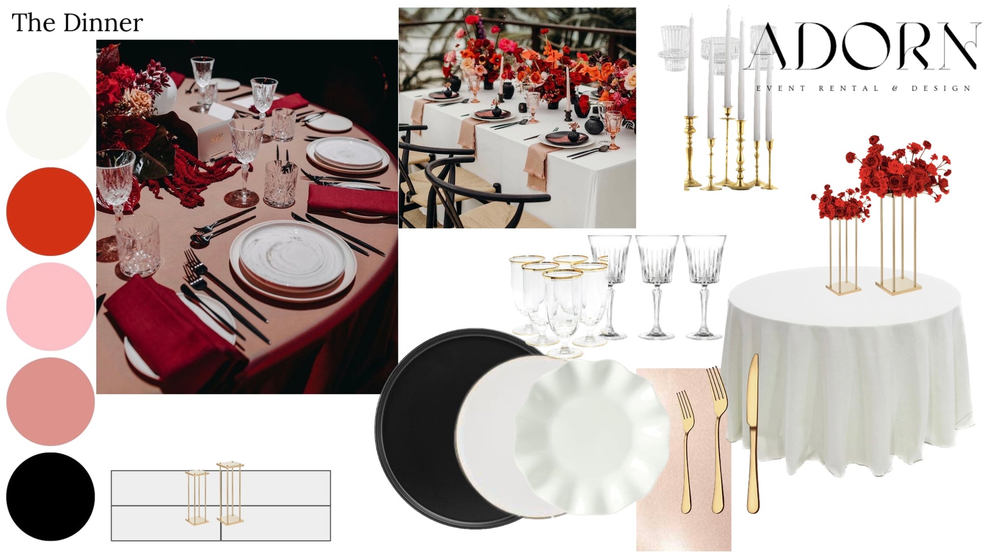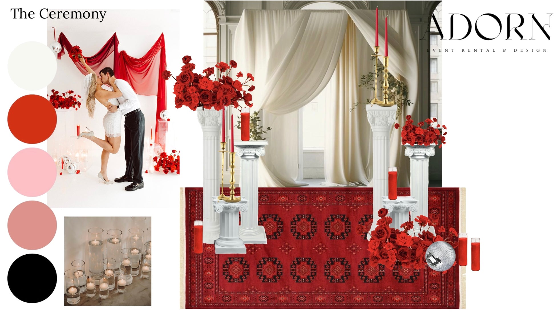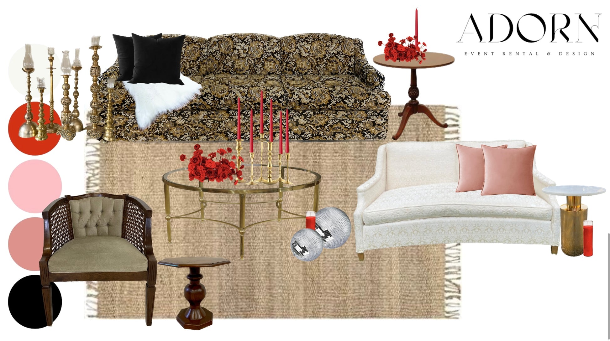 This offer entails a single-day affair with complete customization of all elements. We'll start by asking for any inspiration you may have, then have a quick video chat and discuss further. Using our highly curated collection, we'll create a color palette and design board giving you a clear vision on what your event will be. You'll have two revisions included during the initial design process.