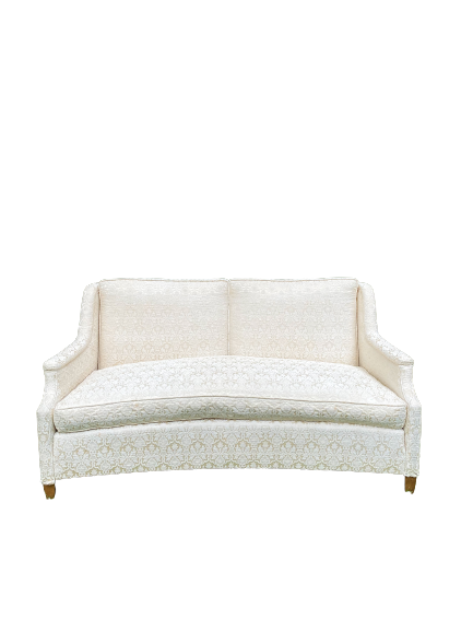 Jane's plain, but she's a glamour queen! Perfect for baby showers, sweetheart table, and wedding lounges. Ivory-colored antique sofa with a subtly-textured floral pattern.