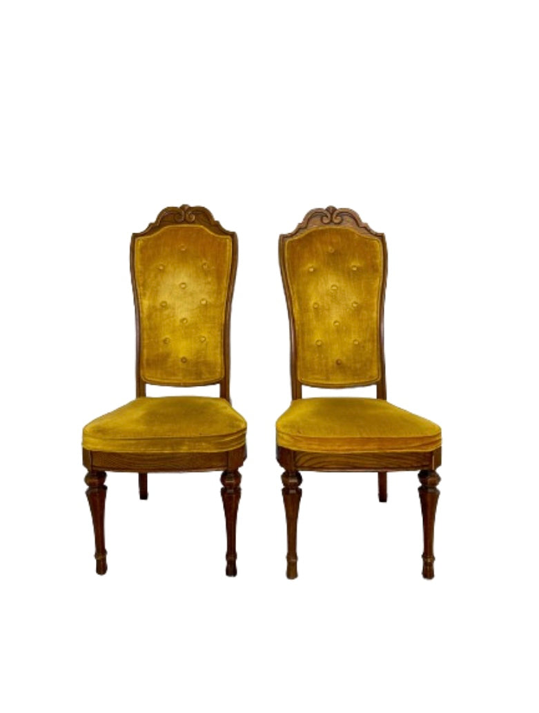 These 1960's gold velvet chairs are perfect for adding to a lounge or using as a couple at dinner. They are rented as a pair.