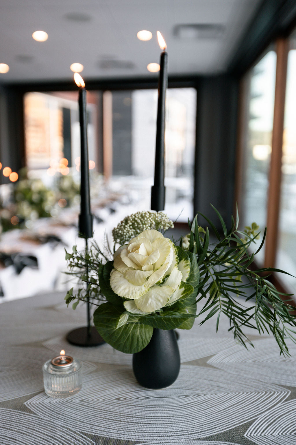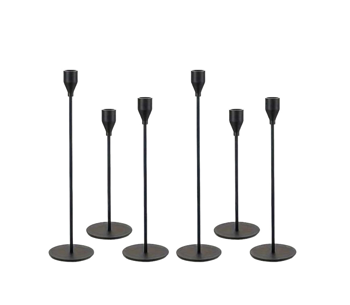 Classic and simple matte black modern candlestick. Give a tall, clean and elegant look. Rental price per candlestick holder, suggested to rent in sets of three to give height variance.