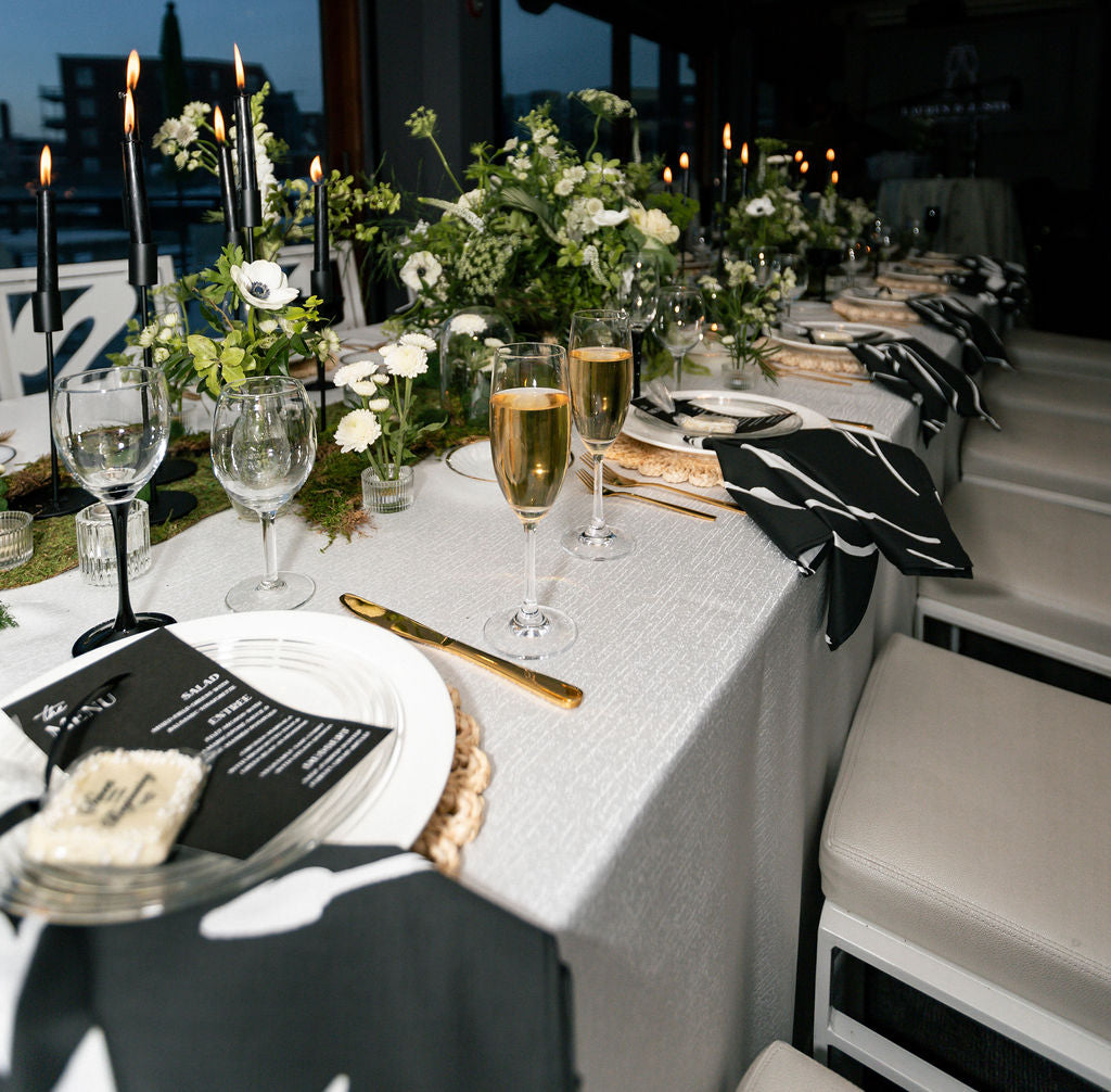 Don’t know where to start? We‘re like an interior designer, but for your event! Just create a wishlist of 2-3 items that speak to you, send it over when done. We’ll reach out for a quick chat and come up with a vision. A breathtaking ceremony, the perfect styled lounge, the dinner tables-cape, etc. Complimentary design service with rental, includes 2 revisions. $300 Minimum.
