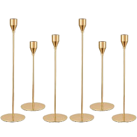 Classic and simple lacquered gold candlestick. More modern feel than brass, give a tall glam presentation. Rental price per candlestick holder, suggested to rent in sets of three to give height variance.