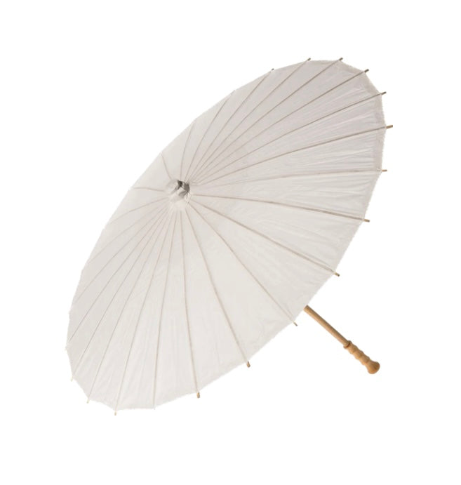 These sun umbrellas are ideal for keeping your guests shaded on a sunny day. Simply display them in a basket for easy access and use. The umbrella has a wooden frame and a stylish paper canopy for a chic touch. 33”